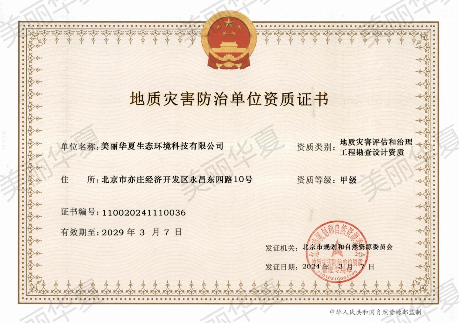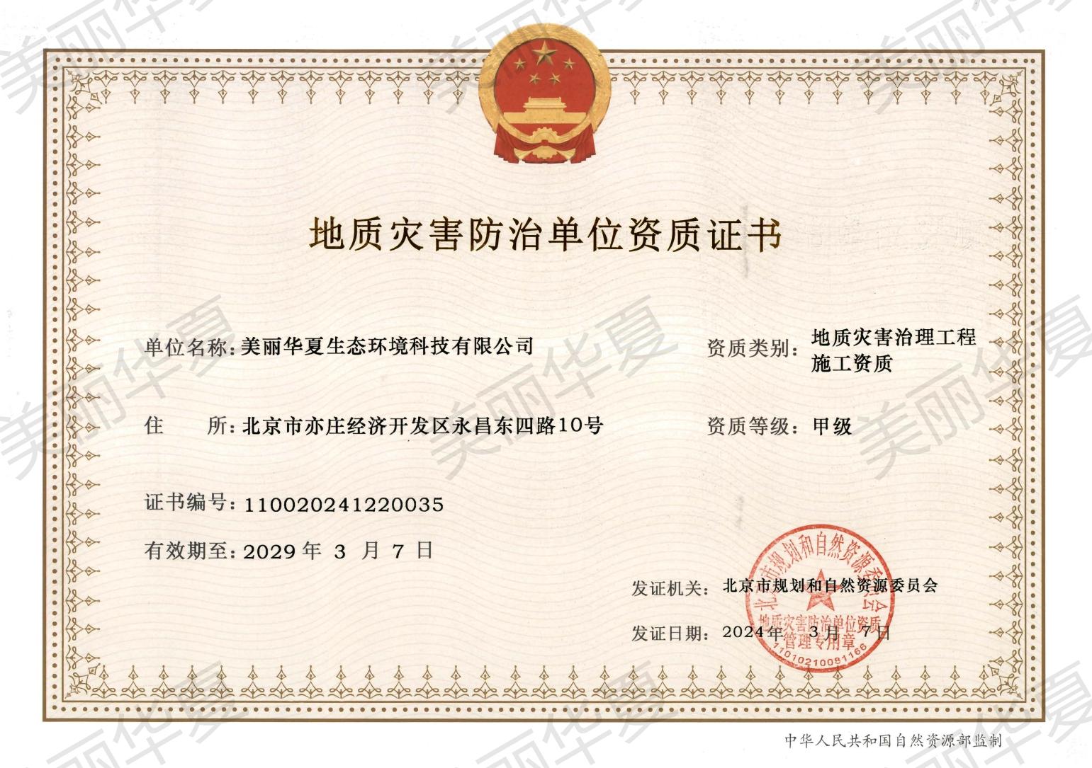 地质灾害防治施工和危险性评估、勘查、设计两项甲级资质