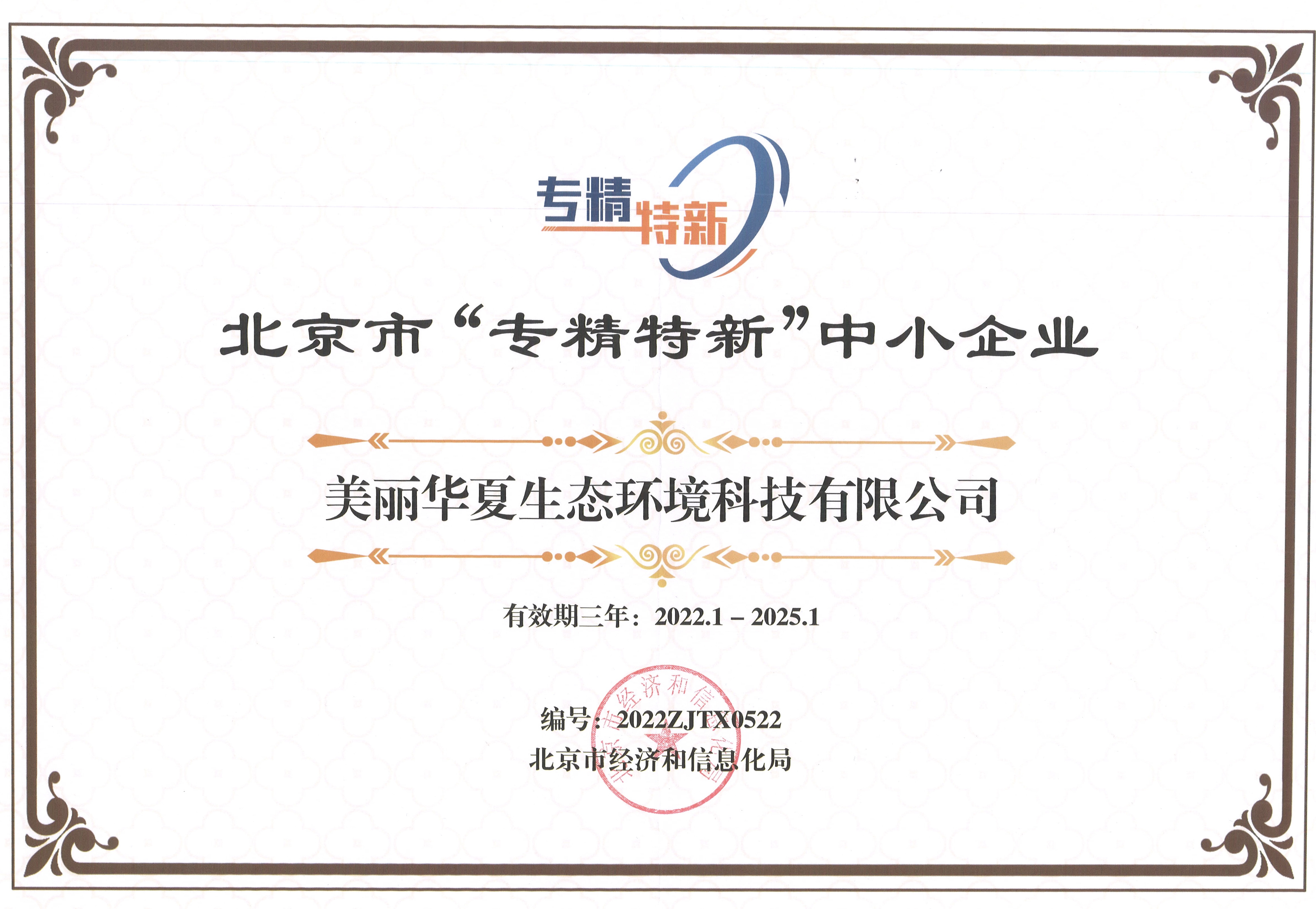 北京市“专精特新”中小企业证书